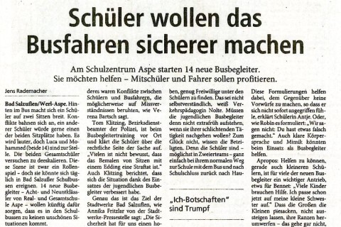 Ein Artikel der LZ vom 05.02.2026 über die Busbegleiter am Schulzentrum Aspe