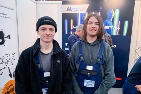 Bei der Berufsmesse „myjob OWL“ kam es in diesem Jahr zu einem besonderen Wiedersehen: Jan Philipp und Till, beide Auszubildende im dritten Lehrjahr bei Metallbau Milde aus Bad Salzuflen, standen auf einmal auf der anderen Seite des Messestandes. Während ihrer Schulzeit an der Gesamtschule Aspe hatten sie die Messe selbst als Besucher kennengelernt – nun vertraten sie ihren Arbeitgeber und warben um neue Auszubildende.