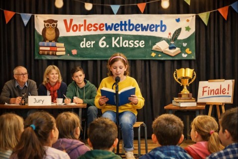 Ein Hauch vorweihnachtlicher Stimmung lag am Freitag, den 5.12.2025, in der Luft, als die lesebegeisterten Schülerinnen und Schüler des 6. Jahrgangs zum jährlichen Vorlesewettbewerb zusammenkamen. Pünktlich zur ersten Stunde versammelten sich die Klassensieger:innen und ihre Stellvertreter:innen im festlich dekorierten Klassenraum der 8e, um vor Publikum und Jury ihr Talent unter Beweis zu stellen.
